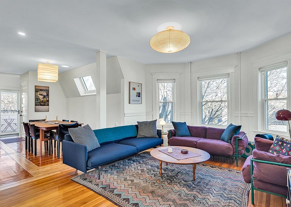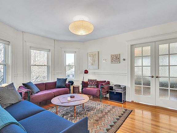Treetop beauty flooded with light. Recently renovated while retaining charming details. Rich wood floors throughout complement the wood trim, high ceilings & large windows. Welcoming foyer w/plenty of room for furniture, window, & closet. Open floor plan allows for more living area and better flow. Giant picture window skylight plus solar tube enhances the dining area. Stunning new kitchen w/stainless-steel appliances, plenty of cabinets, under counter W/D, handsome tile backsplash & direct access to private porch. Bow style windows in the living room add spaciousness & more hours of natural light. Custom window treatments over newer windows. French doors with privacy glass separates the font bedroom to living room for a flexible floor plan. 2nd bedroom has a double closet. Tile bathroom w/ Claw-foot deep tub ideal for soaking. Convenient location - ½ mile to Fresh Pond, easy access to Harvard Square & Charles River plus commercial districts in Belmont, Watertown & Cambridge. A gem.