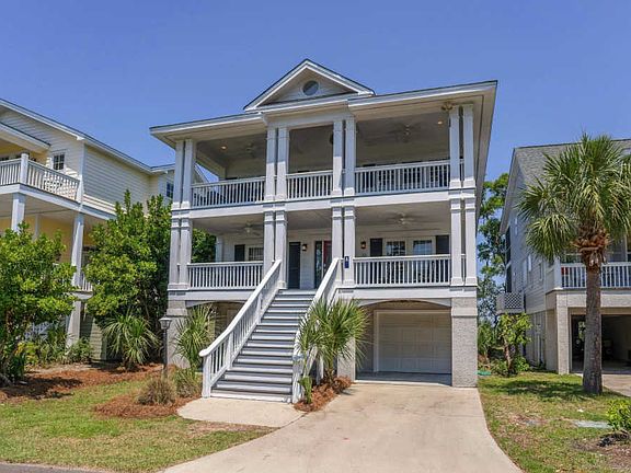 This custom built home with no detailed spared offers expansive Northern views of Old House Creek from the homes back porches. The Southern views from the double plantation style porches overlook The Ocean Creek Golf Course at the 18th hole. Uniquely designed with an inverted floor plan to take advantage of the beautiful marsh views, this home features two kitchens and living areas. Custom touches and hardwood floors throughout set the stage for a home that is a great investment for rental income or a full time family home. The kitchen offers a Jenn-Air cook top, convection oven, granite counter tops and flows nicely into the dining and living area. With an additional 1380 sq ft of outdoor living space, this home offers a laid back lowcountry lifestyle.