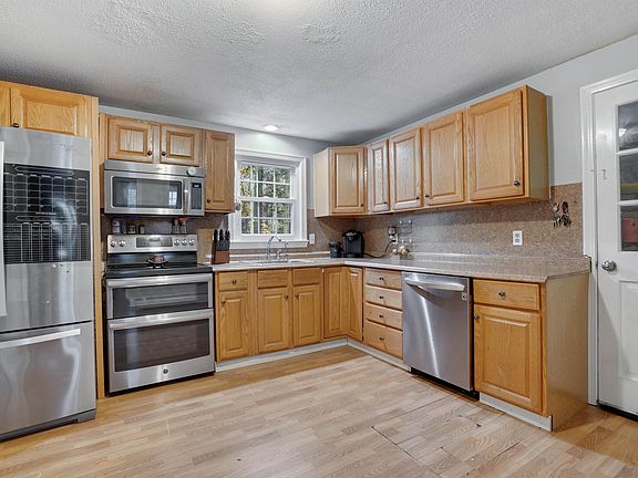 Merrimack Gambrel with 4 bedrooms, 1.5 Baths, nestled on a corner lot, hardwood floors throughout, great yard space, town water and perfect commuting location! Attached 1 car garage with plenty of additional parking in driveway, fenced in back yard with a deck is great for outdoor entertaining. Kitchen complete with stainless steel appliances, open concept to dining area with wainscoting adds beautiful detail to the woodwork and is an ideal gathering space for the upcoming holiday season! Spacious living/family room offers a pellet stove to warm up next to on those chilly nights. Gorgeous hard wood floors throughout all refinished 2017,recessed lighting and newer windows on main level. 2nd level living offers 4 spacious bedrooms and a full bath. Interior of home recently painted along with new closet doors in bedrooms. Exterior Vinyl painted in 2022. Tons of storage space in the full basement with a new bulkhead installed this year. Potential to finish additional space for home office, playroom or home gym! Offers so many possibilities! Set on a quiet street and cannot be topped with such convenience only minutes from Everett Turnpike for the commuter and only 2.5 miles from all that downtown Merrimack has to offer! Less than 5 miles from Mastricola Elementary School, Merrimack Middle & High School. Merrimack Premium Outlets just 10 min away. Add your personal style & finishing touches to make this YOUR home today!