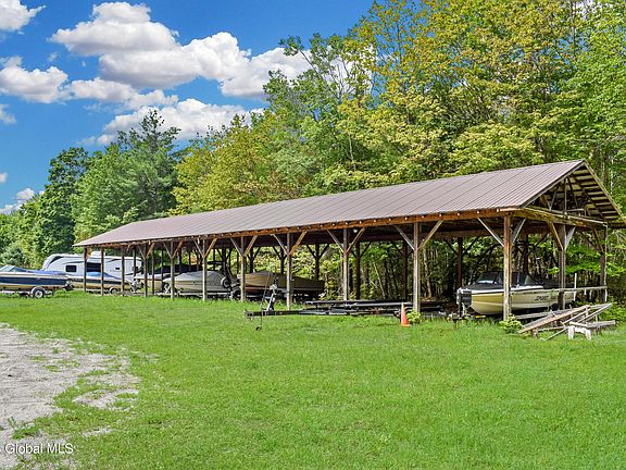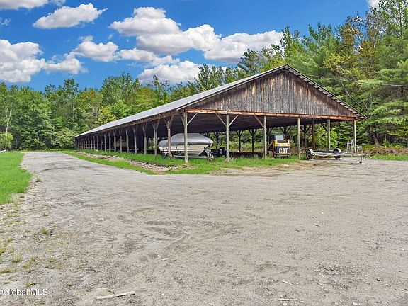 Heated garage with mini-kitchen upstairs. Property is partially cleared with several very nice home building locations on-site as well with privacy and mountain views. Aside from the 12,000sf of covered storage buildings there is 20+ acres of private land that tie-into the local trail system. Very nice residential neighborhood that is situated minutes to both Brant Lake and Schroon Lake.