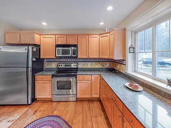 Remarkable Well-Maintained, Expanded Ranch with a spacious open floor plan offers the ultimate privacy you are looking for on nearly 5 acres. You'll love the main floor living area boasting a large eat-in granite kitchen, stainless appliances, and an island with seating open to a dining room and living room with a woodstove. A master suite offers a beautiful master bathroom, custom walk-in tiled shower and closet. Wait, there's more! An entire daylight finished lower level offers excellent entertainment space and additional living area coupled with a bar, half bath, and office/exercise area perfect for working from home. Escape to the outdoors on the front deck and both yards receive lots of sunlight for the outdoor enthusiasts and green thumbs. Attached two car garage provides for additional storage space with even more storage space in the over-sized shed! Your move-in ready home is waiting for you right here! View a Matterport 3D Tour by clicking --> https://bit.ly/2LiCBbl For more info or to schedule a showing call The Mateja Group 207.553.2605 & visit JeffSellsMaine.com
