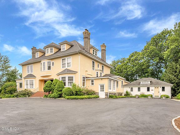 Expansive and grand in-town home 1 minute to Greenwich Ave. and all downtown amenities. Set down a long private driveway this sprawling residence offers an elegant style of it's Era, lush mature gardens, a relaxing pool and idyllic yard on an impressive 1.32 acres. At 8239 sq ft this home offers 23 rooms, 9 bedrooms, 6 full baths, 2 half baths, 6 fireplaces and dramatic large formal rooms with extra height ceilings, custom paneling, abundant natural light and dental offices in continuous operation since 1972. The property can be subdivided into at least 2 parcels