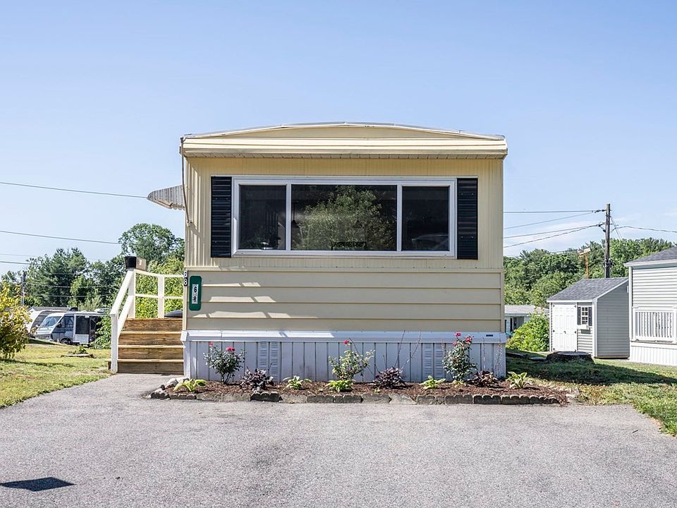 Move in ready, sunny and spacious two bedroom home is ready for a new 55+ young buyer! Extra large living room and kitchen filled with plenty cabinets is just perfect for the home cook. New rubber roof installed approximately 3 years ago and two new storm doors. Spacious main bedroom with large closet and second bedroom features built in and closet. Central air and a nice size storage shed are included.