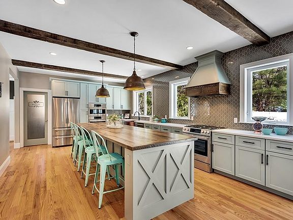 - Kit Dscrp: Pantry, Dining Area, Flooring - Hardwood, Countertops - Stone/Granite/Solid, Kitchen Island, Stainless Steel Appliances, Open Floor Plan, Recessed Lighting, Ceiling - Beamed, Slider, Exterior Access