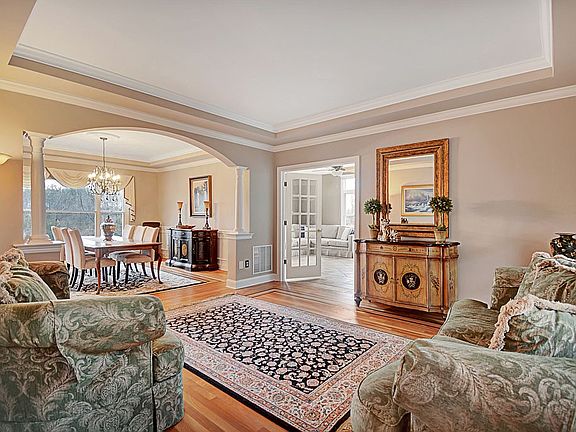 Spectacular stone accented Colonial w fantastic open flow for all occasions, custom moldings, wood flrs, chefs KIT w oversized island, 2 dbl-sided frplcs, conservatory, & fin bsmnt w rec rm & gym! Tucked away on a sweeping country property w open lawn, yet close to everyday conveniences & transit to NYC, this luxurious home has it all! Soaring foyer leads to open formal LR & DR for elegant affairs. French doors to a sun filled conservatory. Easily work from home in your office. Gather around the lrg center island in the KIT w designer applncs, furniture grade cabinetry, breakfast area w sliders to a lrg deck & 2-sided stone frplc to a spacious fam rm w soaring ceiling. Rejuvenate in the lux mstr suite w 2-sided frplc, sitting rm, bth w jetted tub & shwr stall. 1 bdrm suite & 2 addl bdrms & Jack-n-Jill bth.