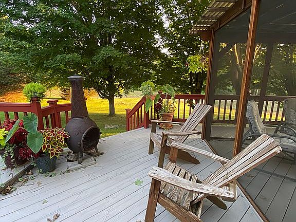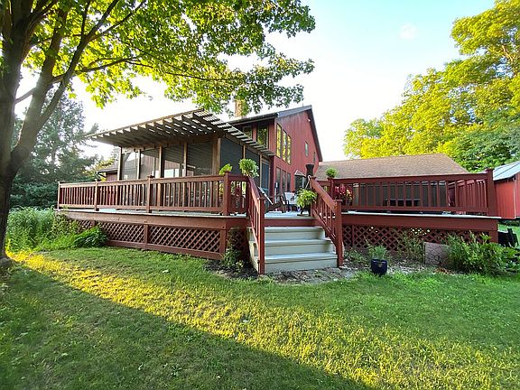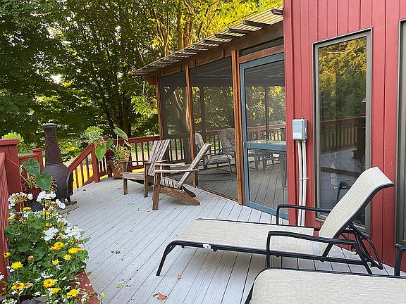 Modern home with some rustic details. Kitchen, dining room, sun room, foyer, great room, 2 bedrooms and a full bath all are located on the ground floor. The second story has an open loft adjacent to the master bedroom and en-suite (with in floor radiant heat) and 2nd story of the sunroom. A 24’ high cathedral ceiling over the greatroom and lofted master bedroom ceiling give the home a spacious feel. The finished basement has an office area, family room with gas fireplace, laundry room, full bath, and root cellar. Approximately 600 sq ft of deck with screened area make this home a great place for outdoor entertaining. A 30’x30’ garage insulated/sheet rocked and wired with 100 amp service with pull down attic stairs to access storage above. Pine plank floors in the loft and master bedroom and field stone fireplace in the great room give the home a rustic flair. This home was built to last. What you can’t see are the 2x12’s instead of 2x10’s and the genuine plywood instead of particle board. The basement floor was constructed with air flow between the concrete and plywood to ensure it stays dry. This home has lots of custom wood built ins and all the interior doors are solid wood raised panel.