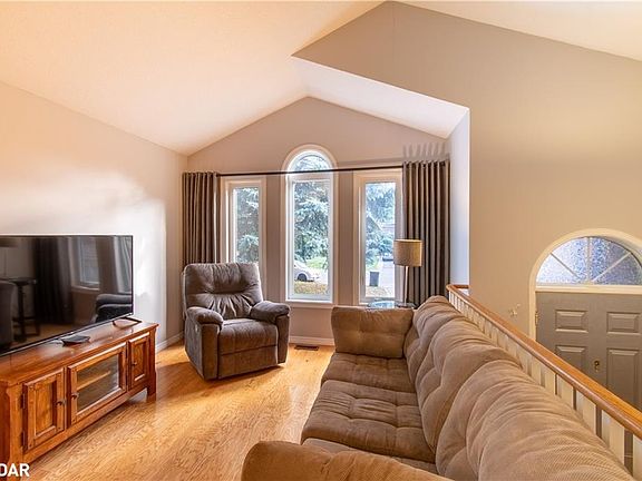 Welcome to this spacious raised bungalow offering around 2300 sq ft of living space, just minutes from Canada's largest freshwater beach. This home combines an ideal location with a functional and inviting layout. The main floor features an open concept design highlighted by cathedral ceilings and large windows that fill the home with natural light. The living and dining areas flow seamlessly into the kitchen, with a convenient walkout to the deck, perfect for entertaining or enjoying quiet mornings outdoors. Two comfortable bedrooms and a full bathroom complete the upper level. The bright lower level offers exceptional additional living space with oversized windows, two more bedrooms, a full bathroom and a spacious living room with a cozy natural gas fireplace. Whether you need guest accommodations, a home office or a retreat for family gatherings, this level provides flexibility for every lifestyle. Set in a desirable area close to Schools, shopping and recreational activities, this home is a perfect blend of comfort and location, this home is a must see.