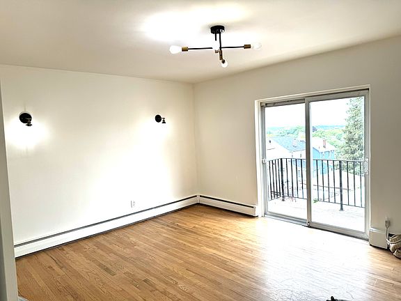 Clean, bright 2-Bedroom apartment with updated bathroom and EIK. This apt offers a generous size welcoming LR with sliding doors to an outside open terrace facing west. Terrice is perfect for relaxing or taking a sunset view. Unit also offers wall air conditioner in LR, HDW flooring and respectable closet space. Located in the heart of town, everything is steps from the front door such as: NYC Express bus, banking, shopping, worship, hair salons, local eateries, and plenty of take out food establishments. Unit also provides designated parking for one car, handyman and on-site laundry. Pets are not permitted. Landlord requires respectable credit score, proof of income, identity and 1.5 month security Owner pays for water, tenant pays all utilities. Landlord requires one and half month security, first month rent at lease signing.