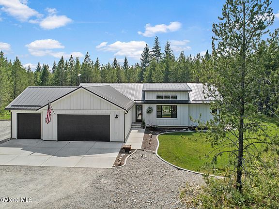 North Idaho Rancher on 5 Acres in the beautiful gated community of Clagstone Ranch. Step inside this sprawling single-level layout with a full finished basement, offering over 2,900 sq ft of meticulously designed living space, 5 bedrooms and 3 bathrooms. Natural light floods the open living room featuring a fireplace and framed by large windows showcasing the lush 5-acres. The modern kitchen features stainless steel appliances, a subway tile backsplash, and an impressive center island. With five spacious bedrooms and three well-appointed bathrooms, including a luxurious master suite with double sinks and a walk-in tile shower, every corner reflects thoughtful design and premium finishes. Outside, mature trees, meticulous landscaping, and an open patio ensure privacy and tranquility, complemented by exclusive access to a private park and wilderness areas. This home offers a rare opportunity to embrace modern living with serene natural beauty North Idaho has to offer.
