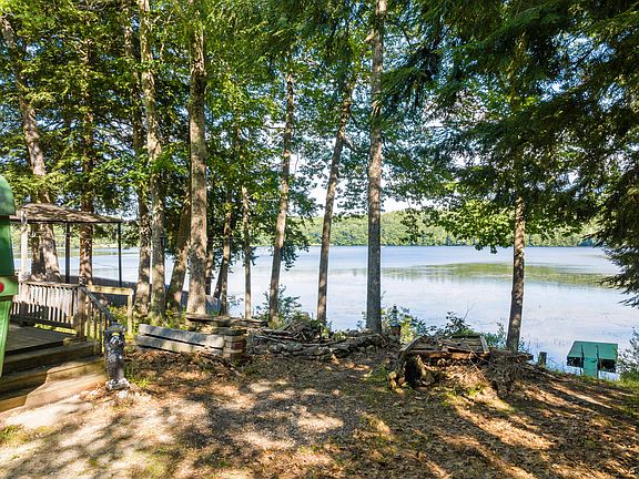 Sold as-is, the trailer features fully operational electricity and air conditioning units. No heating or hot water tank, yet an innovative jet pump can provide water from the nearby lake, adding a rustic appeal. The amenities extend to power, septic, dock, paddle boat, large deck, a shed with electricity, and 100+/- feet of waterfront adorned with blueberry bushes.