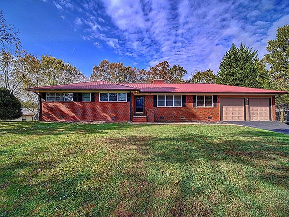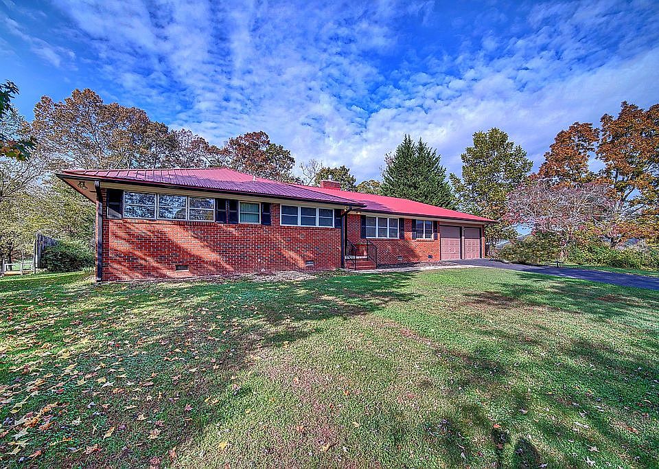 In Town Living! Beautiful Brick Home with 4 Bedrooms and 2 Baths, 2 car garage all on Main Level; Yard and Gardens that make you feel as if you are in a Quaint Country Setting. Large Living Room with new wood flooring, recently renovated gorgeous kitchen, Large dining room with fireplace and gas logs. Huge Outdoor Covered porch plus deck space overlooking Garden Area. Updates and Upgrades throughout. Unlimited Potential for Commercial Use/ Home Business PLUS an approx 400 Square Foot Finished and Heated Outbuilding with new metal roof and shed for mower. Level Lot, Year Round Mountain Views.