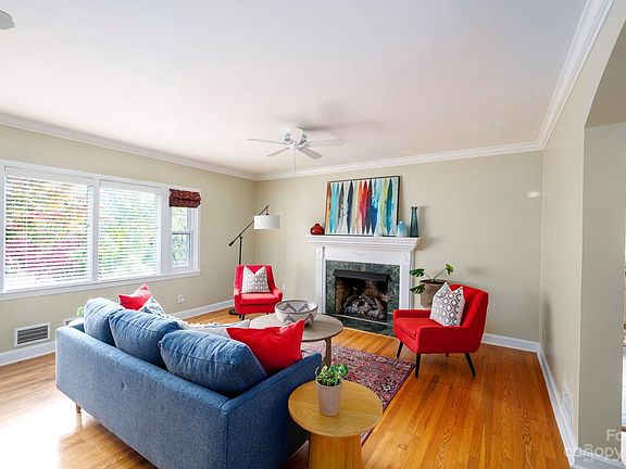 Location that can't be beat in desirable Lakeview Park, across the road from Asheville Country Club’s First Hole!!! This traditional brick home is perfectly positioned on a picturesque, tree-lined street. Great option for those looking for one level living, with the primary suite and laundry on the main floor. Wide arched doorways connect the updated kitchen and large living room to the formal dining room.  Dining area opens to spacious veranda, perfect for al-fresco dining while overlooking the private back yard. Significant improvements include newer stainless steel appliances, a renovated primary bathroom, newer electric panel and a laundry closet with a high-end washer and dryer added to the main level. Functional floor plan offers three bedrooms on the main level (one being used as a den/sitting room). Partially finished basement with tons of potential. Tandem two-car attached garage and a landscape closet/shed for car, tool and toy storage. See brochure for more info.