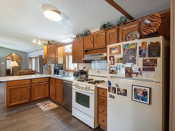 Here's your ticket to comfortable, main level living at this well-maintained 2 bedroom, 2 bath home in Rhinelander's popular 55+ Edgewater Homes community! The home's interior features the kitchen with ample cabinet space, a dedicated pantry and peninsula count, an adjoining dining area w/ buffet space, a bright & cheery living room with many newer windows, a guest bedroom, a full bath, laundry room, and the primary suite with 2 spacious closets, a full bath w/ newer step in shower and a 4x5 walk-in closet. The exterior enjoys a blacktop drive, covered front entry, a 16x28 garage with lots of storage space and potential for a workshop/hobby space, a back deck, and a concrete patio space perfect for entertaining guests and neighbors. Edgewater Homes mobile home park is a close knit & well-kept community with access to the Rhinelander Chain of Lakes via Thunder Lake (buyer to verify dock space availability) for year-round enjoyment of boating, fishing, snowmobiling, and socializing.