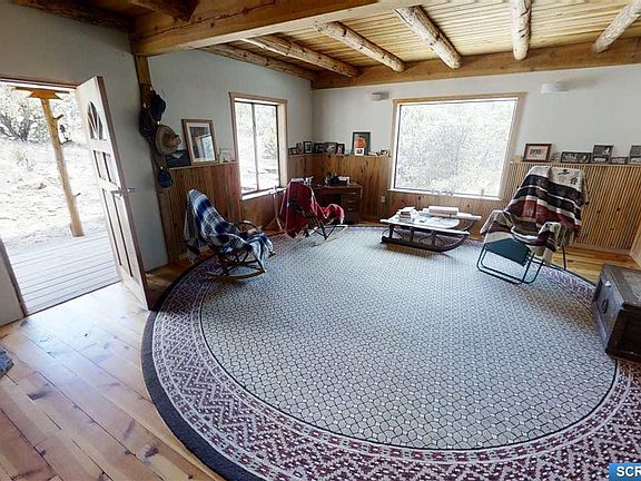 Custom built cabin style home secluded location w/ cottonwood and pine trees surrounding home also a stream nearby. 2BD , plumbing in place for a bathroom to be done and for kitchen to have water. Water has not been brought in the house. Private well , needs septic . Large shop for hobbies approximately 800 sq ft. in size. Large kitchen. Sunroom can be used for bedroom or office needs to be finished lots of space.