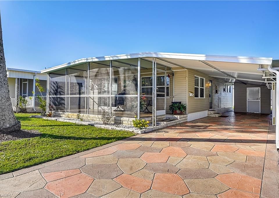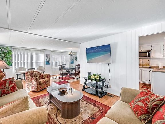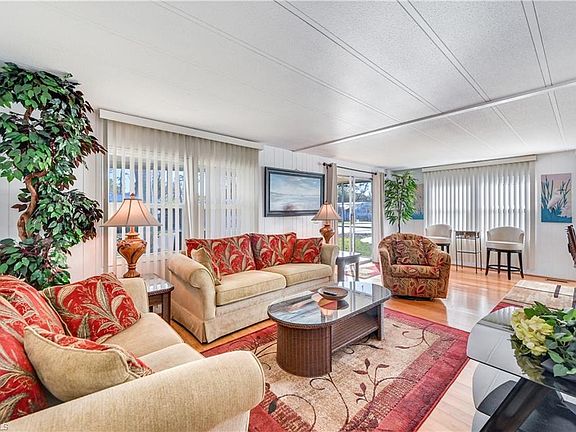 Move-in Ready, This 2 bedroom, 2 bathroom, double wide is located in Enchanting Acres Mobile Home Park. Kitchen has newer cabinets, double oven, electric cook top.. Primary room has a private bathroom with shower. Being sold Turnkey furnished. Floors are bamboo. Newer windows. Front of home has a screen-in lanai to enjoy the Tropical winters. Driveway is professional painted to have a paver look. The underneath of mobile has been spray with foam insulation. Enchanting Acres is a 55 plus in age co-op community. No pets are allowed. Here you have a community pool, spa, shuffle board courts, and a club house.