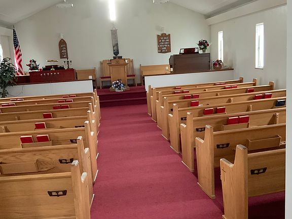 Nice private acre off of side street. Solid church building can be converted to single family home