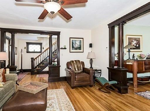 You will sense the quality of this home as you walk up the front steps with trek decking and into the large enclosed front porch. Step into the large foyer. From there you enter the front to back living room and dining room with the gorgeous hardwoods and beautiful woodwork that continues throughout the house. Off the dining room is an office. Off the living room is a large sunroom with sliders to a trek deck and steps to a brick patio surrounded by gardens and fencing. The kitchen features stainless appliances, tiled backsplash and granite counters. Off the kitchen is a modern half bath. The side entry has a tiled mudroom and leads to a pantry off the kitchen. Up the staircase you find three large bedrooms. Two with hardwoods, one with carpet(hardwoods under). The upstairs bath has granite counters, tile and radiant heat. This home blends the old and new perfectly and has been well cared for by the long term owners. Showings begin Sunday at the Open House 12-2.