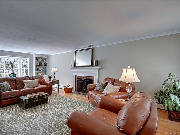 Classic Colonial in a very popular neighborhood! Three story home with walk-out lower level, brick patio, and attached 2 car garage with breezeway/mudroom. 68 Evergreen hosts a bright & airy front to back living room with propane fireplace, built-ins, and hardwood floors. The eat-in kitchen replete with stainless steel appliances, breakfast bar, and slider to the rear patio - the perfect spot to take morning coffee or grill for your guests. Just off the kitchen, the formal dining room has plenty of entertaining space; while a den off the kitchen could serve as an office or 1st-floor bedroom. The second floor offers a master suite with tile shower in the full en-suite. 3 more guest rooms and additional full bath round out the floor. The lower level is fully finished with a walk out and fireplace. Perfect rec area or media room! Don't miss this one...!