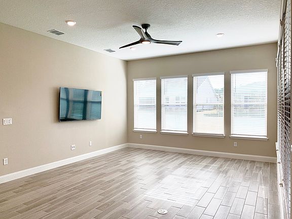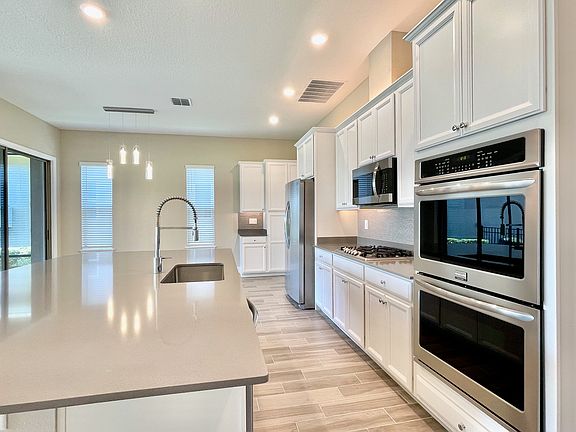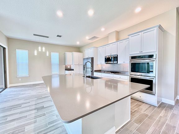 an open concept with over-sized quartz kitchen island--make this home perfect for holiday and family entertaining! Pest Control and Landscape service included. 65" TV in Great room! Gorgeous epoxy floor in garage! Custom closets installed throughout the home! Enjoy all amenities in gated community including clubhouse, infinity resort pool, fitness center, putting green, club activities, full lawn care plus abundant amenities offered in Nocatee. Close proximity to new Flagler and Baptist Hospitals, Brooks Rehab and YMCA.