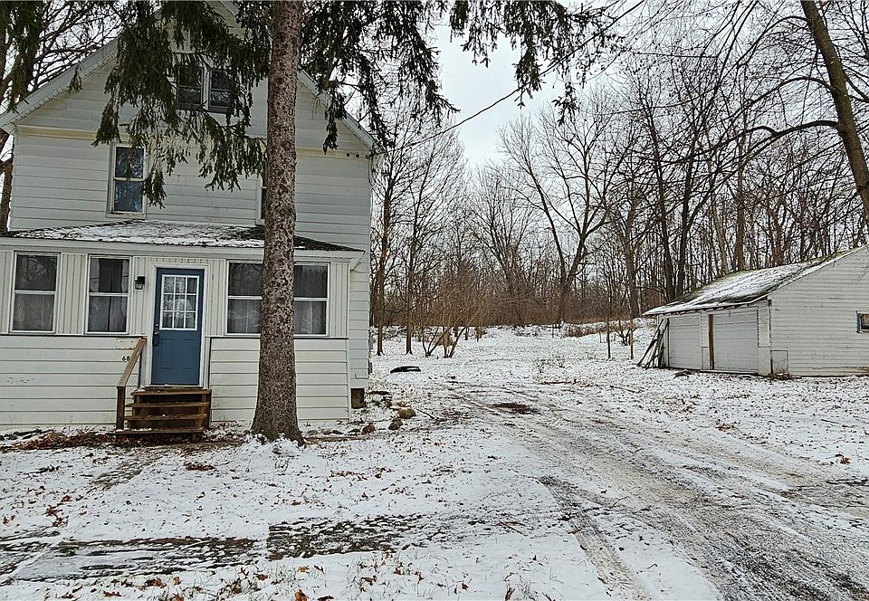 Discover this charming 3-bedroom, 1.5-bathroom home, perfect for those valuing comfort and simplicity. The cozy living room is ideal for relaxed evenings. The kitchen, efficient and inviting, features an eat-in area, and new countertops. A convenient first-floor laundry, followed by a half bath, adds practicality to the home's layout. Upstairs, find three comfortable bedrooms, along with a convenient full bathroom. The full, unfinished attic offers ample storage space or the possibility for future expansion. Outside, the home sits on a generous double lot, providing a spacious yard for gardening or leisure. A detached 2-car garage offers ample space for parking and storage.