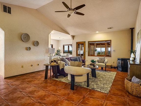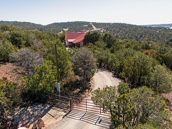 What an incredible find! This serene mountain retreat is nestled on a 2.43-acre fully fenced and gated lot, offering breathtaking views of the Sandia Mountains. This single-story home boasts 3 bedrooms, 2 baths, and a spacious living area adorned with beautiful tile flooring throughout. The large finished sunroom floods the space with natural light, making it the perfect spot for hobbies or simply extending the living area. With two pellet stoves, granite kitchen counters, a metal roof, and a water catchment system, this home is both cozy and efficient. Additionally, the large workshop near the garage provides ample storage and space for tools. The community features paved roads and community water, adding to the overall appeal of this wonderful property.