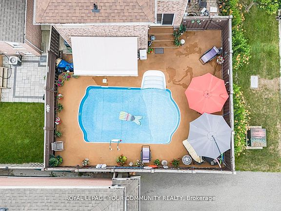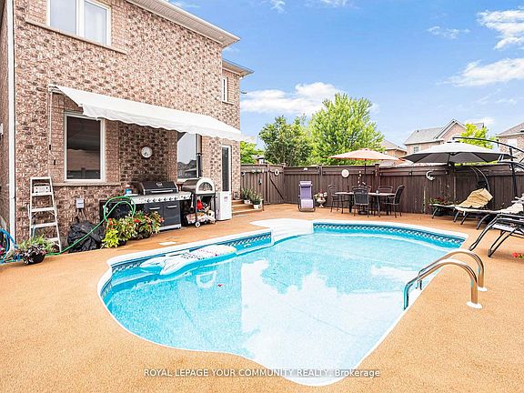 Ideal detached home located in highly desirable family friendly community. Impressive curb appeal with oversized front door, patterned concrete driveway & brand new garage door. Open concept main floor with wall to wall windows and hardwood flooring throughout. Modern chefs kitchen boasting custom cabinetry, granite counters and backsplash, double wall oven, pot filler, drawer microwave, under-cabinet lighting, and a large island with hard block countertops. Brand new blinds & upgraded LED lighting + renovated powder room on main floor. 4 spacious bedrooms with ample closet space. Primary bedroom with spa like ensuite with jacuzzi tub & granite finishes. Finished basement with additional storage space. Backyard ready to host friends and family this summer with salt water pool, with rubber surfacing, stucco cabana, interlock pathways + underground sprinklers. A/C, furnace, humidifier, and roof were all replaced in 2022. Prime location minutes to top schools, parks, trails, and shopping. A must see!