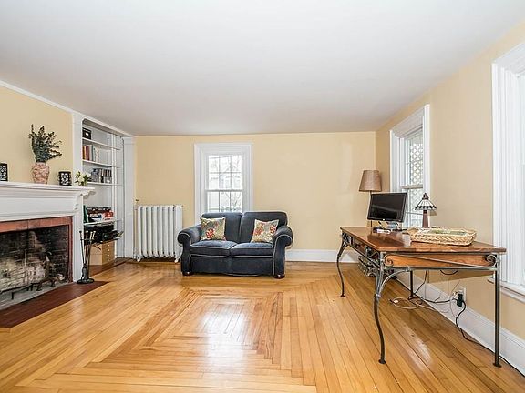 Welcome home to a Gracious ANTIQUE COLONIAL on the corner of Grove & Mark Avenue. Historically this property is known as Nehemiah Bancroft House, est built in 1815. This home boasts large rooms & great ceilings, a traditional center entrance floor plan complete with beautiful wood floors throughout. When you cross through the front door, you are greeted by a warm living room & formal dining room, both with old-time fireplaces. Updated Eat-In Kitchen, with white shaker cabinets, granite counters, center island, glass backsplash & stainless appliances, is enhanced by a large working fireplace off the kitchen, Enjoy a contemporary family room for all to gather. A full bath & separate laundry room complete the first floor. Onward & upward to the second floor where there are 4 spacious bedrooms along with a bonus room, perfect for a home office or nursery. Great closets & storage space throughout this house.