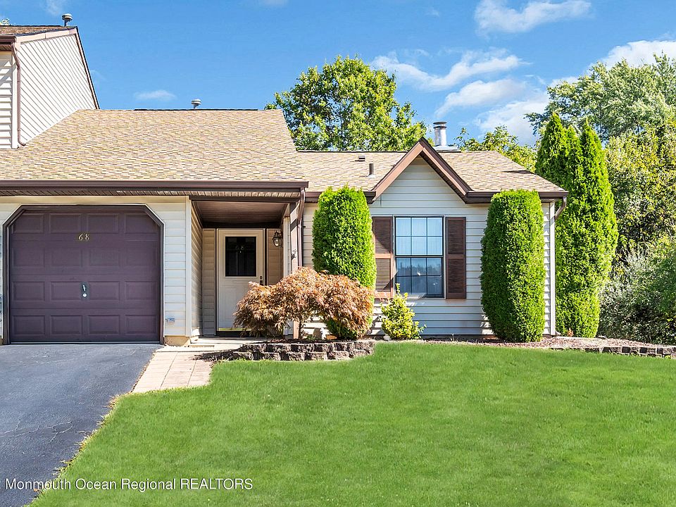 Welcome to Moors Landing. This 2 bedroom, 2 full bath end unit ranch is ready for its next owners to put their stamp on it. The eat-in kitchen has an attached laundry room with full-sized washer and dryer on one side and a pass through to the dining room on the other. A spacious living room with a wood-burning fireplace and sliders to a private fenced backyard. Open the back gate to access the tree-lined common area. Garage has a partial conversion to a den/bonus room. There is storage in the garage and in the attic above the garage, which has pull down stairs. This is an AS-IS sale. NO DOGS per the HOA. Home is located near the Route 9 corridor for public transportation. Grass has been digitally enhanced in the photos. Highest & Best due, Monday 10/3/22 by 5PM. Offer acceoted.