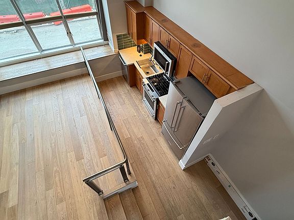 High ceilingsStainless steel appliancesHardwood floorsCustom cabinets