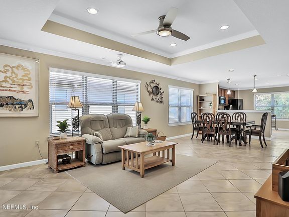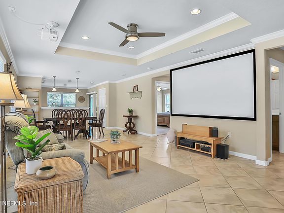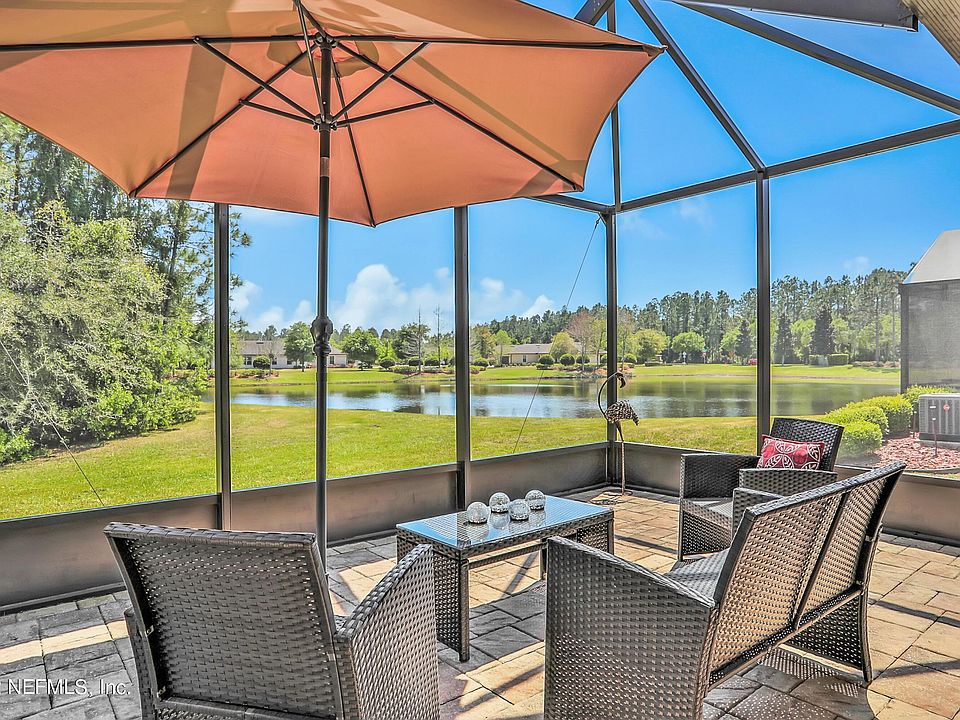 Welcome to Riverwood by Del Webb, quiet & cozy 3 Bedrooms 2 bath home, further enhanced with fantastic outdoors & water and preserve views! Experience the thrill of owning a state-of-the-art home theatre that is included with the sale! The extended paved and screened lanai is a perfect parametric view of sunrises and moonrises and an excellent observation place for launches from Canaveral Space Center. Owners also enjoy the Anastasia Club with w/indoor & outdoor pools, spa, sauna, tennis, pickleball, bocce, fitness center, banquet facilities & full-time activity director. Just a quick golf cart ride to the Nocatee Splash Park & Ponte Vedra Beach shopping, restaurants. Minutes from Atlantic Ocean beach and TPC Sawgrass! Enjoy a healthy Luxuries resort style of living.