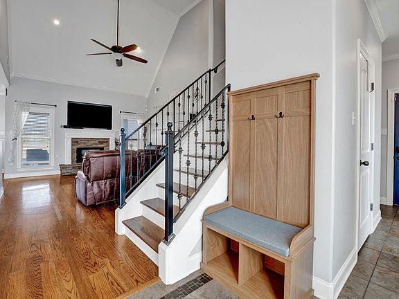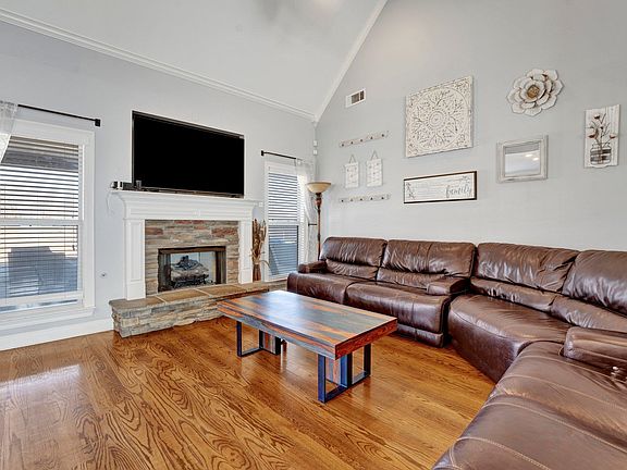 Custom built 4 BR, 2.5 BA home on almost one acre. Beautiful hardwood flooring and tile throughout - no carpet! Gorgeous trayed ceiling in the Dining Room. Fabulous Kitchen with gas cooking, pot filler, tons of cabinet space and granite counters with tile back splash. Primary Bedroom down with ensuite including King Spa shower, double vanities, jacuzzi tub and HUGE closet! Original owner added 4 feet to the garage (perfect for XLong trucks/SUVs) which added lots of storage space and sq ft to the upstairs bedrooms! Enjoy outdoor time in wood-fenced yard complete with covered and expanded patios and fire pit. There is currently nothing behind this home but a beautiful open field allowing for wonderful sunset and nature views - watch the deer roam!