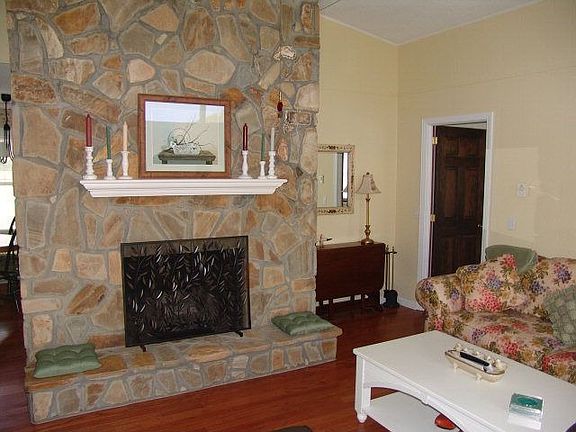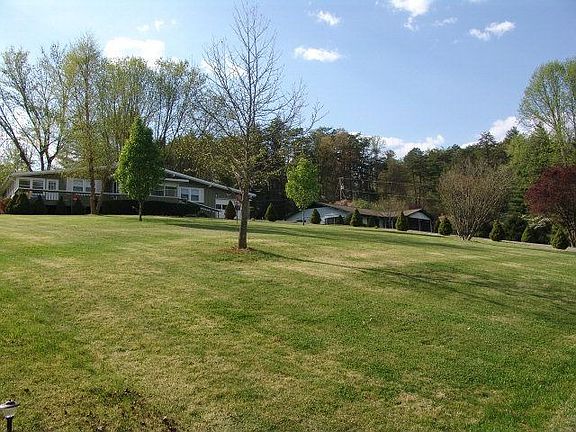Attractive home that is MOVE-IN READY. Gorgeous hardwood floors, and an updated kitchen w/garbage disposal. New bath vanities, and freshly painted. Lovely views! Rock fireplace w/gas logs, lots of windows, large, enclosed sunroom (550 sq ft) w/climate-controlled blinds and a hot tub! Pastoral and treetop views. Large outbuilding/storage shed. Built-in workshop in carport. Paved to the door.