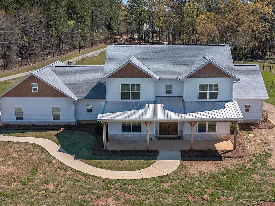 Welcome to this stunning, recently constructed farm-style home in Wilsonville! Walk up to the charming, covered front porch and enter through the inviting front doors. There, you will find the open floor-planned great room adorned with hardwood flooring, 9-foot ceilings, wooden beams, and a gas-starter brick fireplace. The kitchen is a vision of perfection with its white cabinets, quiet pull-out drawer system, and spacious island great for sitting down and sharing a meal. On the main level, you'll discover the expansive master bedroom boasting a customized master bath, ample closet space, and a private entrance to the back patio. Upstairs are two spacious bedrooms and an additional bonus room perfect for a home office or media room. The property sits on 1 acre, with the surrounding 2.89 acres available for purchase. Total acreage has the chance to be 3.89 acres! Don't miss your chance to experience this peaceful, farm-style way of living.
