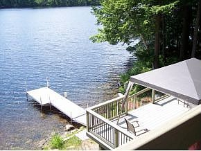 A great lake house with 200 feet on pristine Lower Beech Pond. totally renovated with beautiful granite fireplace, new deck, dock and even an outdoor shower! Breathtaking views. Enjoy the loons and beautiful sunsets from your screened porch. Complete privacy but minutes to Wolfeboro.