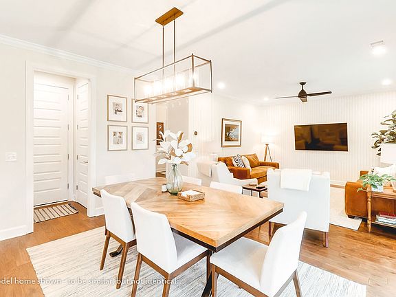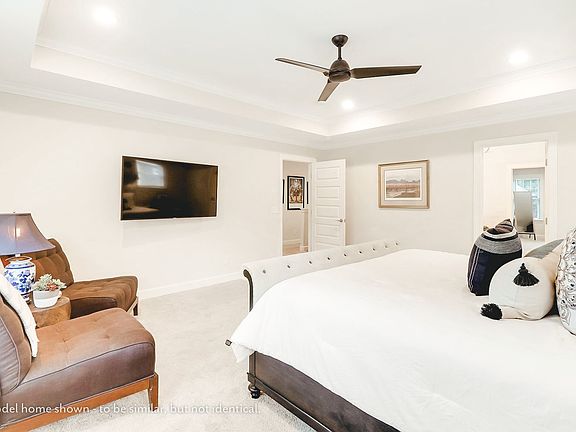 Our Daufuskie plan features 5 bedrooms, and 3.5 bathrooms.. Upon walking into the home is a guest bedroom with a full bathroom. Down the hallway is a powder room and a flex room and/or office. The great room has large windows that overlook the full width back patio. It flows seamlessly into the breakfast area and kitchen. Upstairs are the 3 remaining secondary bedrooms, full bathroom, loft, and owner's suite & bathroom.