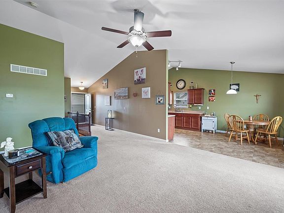 Beautifully maintained ranch in Hammett Hills Subdivision. A covered porch is perfect for a table and chair. Through the front door you'll walk into the foyer and have a clear view into the living room with vaulted ceilings. The kitchen and dining area are to the left. The main floor laundry is between the kitchen and 2 car garage. The primary bedroom has a walk-in closet and a primary bathroom. 2 more bedrooms and a full hall bath complete the main level. The lower level is just waiting for your personal touch. There is an egress window allowing the possibility for a true 4th bedroom and a rough in for a bathroom. Personalize it to fit your needs!