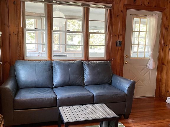 BEACH ! Adorable beach association ranch home available for Academic rental starting second week of Sept through May. Pets considered with additional rent. Large 3 season front porch extends living space. 2 BR plus an additional fold down futon in den. Eat in kitchen. Full shower bath was totally renovated 3 years ago. Stackable washer and dryer is 3 years old. Paved driveway can accommodate 3 cars for off street parking. Deeded beach rights to both beaches at end of street. Outdoor shower. Charming! Quiet neighborhood.