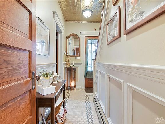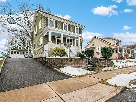 Step into this meticulously restored traditional colonial with a rocking chair front porch and views of the NYC skyline. Every detail has been lovingly attended to from a true craftsman. As you enter, you are greeted by custom tin ceilings that stand 9ft on the first floor, creating a sense of elegance and charm. The beautiful hardwood floors lead you through the house and to the living and dining room. The granite kitchen is a chef's delight featuring newer cabinets a granite island and a walk-in pantry. The home boasts 3 bedrooms along with a walk-up attic a full bathroom and two half bathrooms. On the outside the home sits high on its well-manicured landscaping and stone retaining walls. The detached 2 car garage with custom carriage doors and a loft space is the cherry on top of this charming home. You will not be disappointed.