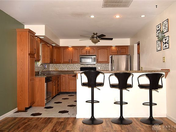 Easy walking distance to bike path! Close to Wright Patt and easy access to Rt 68 and 235. Wonderful brick ranch with 3 bedrooms, 2 full baths located on 1/3 acre lot with lots of beautiful perennial flowers. Open floor plan for easy living and entertaining. L-Shaped living room/dining room which is then open to the kitchen divided by counter space and room for bar stools for casual dining. Kitchen is equipped with stainless steel appliances. Living room has a decorative fireplaces and large bay window which for natural lighting. Owners have made many improvements since purchasing in 2020: Vinyl laminate flooring in LR, DR, Bedrooms and Hallway, Ceramic flooring in main bath, New Furnace and A/C, plus interior painted with all neutral shades. There are beautiful hardwood floors (with the exception of 2 small sections) under the vinyl laminate.