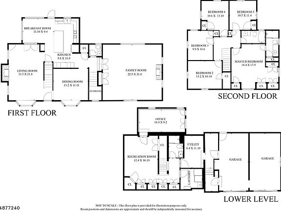 - Level 1 Rooms: Foyer, LivingRm, FamilyRm, Kitchen, DiningRm, PowderRm, Breakfst, MudRoom