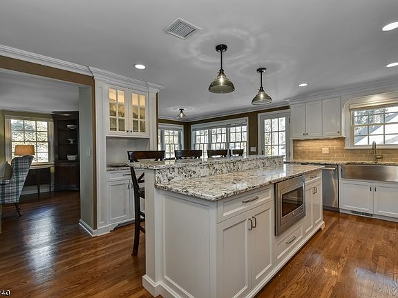Experience this amazing Colonial meticulously renovated inside & out & perfectly located in the sought after Knollwood section of Madison just blocks from town, train, schools, parks & pool. Great value & taxes in this stunning 5 bedroom 3.1 bath home with top of the line finishings & appliances. The living room with fireplace opens to the new white kitchen with quartz counters, breakfast bar, high end stainless steel appliances & breakfast room. The family room has a gas fireplace & high ceilings. A dining room, mudrm, powder rm & 2 car garage complete the first floor. The second floor has 5 bedrooms & 2 full baths with a master suite with lots of closets & en-suite bath. A finished basement with rec room,office, lots of storage throughout, patio with built-in fireplace & great views of the park.