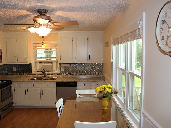 Charming single family ranch with 2 car garage and modern updates throughout. Great family neighborhood. Private level fenced in backyard. Efficient pellet stove saves money on heat. Renovated bathroom in 2013 and kitchen facelift in 2014. Ceiling fans in all rooms, new Energy Efficient Windows done in 2008. Water heater new in 2010. Full home alarm system. Cozy finished basement with tile floor and large closet. Separate walkout from basement. New trex deck done in 2011. Terrific low maintenance home for young families or for downsizing.