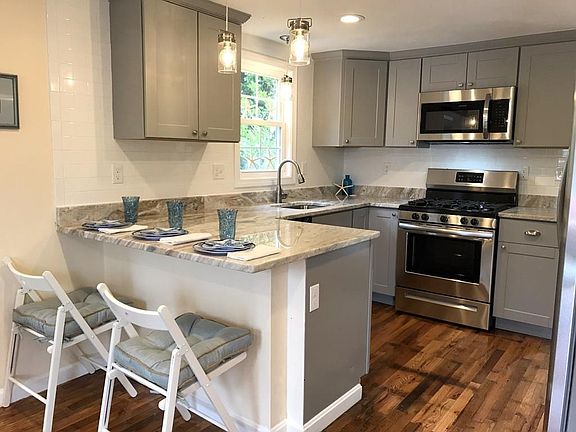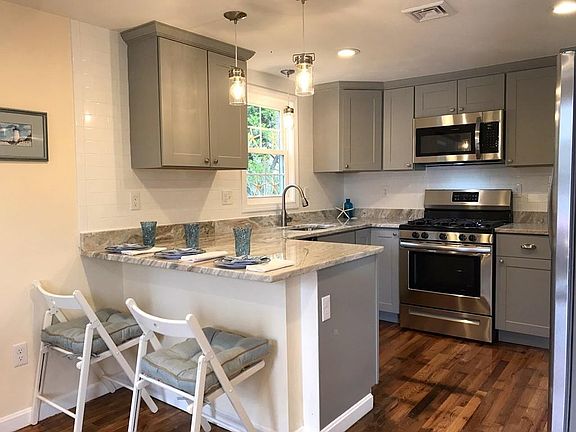 OPEN HOUSE CANCELLLED. Enjoy ocean breezes in this adorable little home by the sea- just 4/10 of a mile to the beautiful beaches & lively waterfront of Ocean Bluff, but NOT in flood zone! Sweet and sunny open floor plan in a bright, beachy color palette with everything you want: brand new gray Shaker custom cabinetry in the kitchen, gleaming granite breakfast bar/peninsula, white subway tile backsplash, brand new stainless appliances and gas range,with sunny french door leading to substantial back yard. Sparkling new bathroom with skylight! Gorgeous barn door leading to sunny, cathedraled den off living room. Just refinished hardwood floors throughout. Large garage/shed (not accessible by car) out back. Brand new siding, doors, windows, 2 year old roof, and 1 year old super-efficient gas furnace!. Private yard w/ mature plantings. Quiet side street, nice neighborhood. On town water and sewer. Nothing to do but move right in & enjoy!