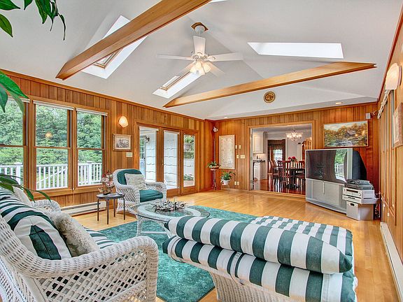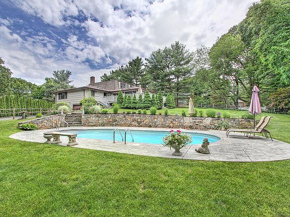 Stunning grounds featuring gorgeous, heated in-ground pool, storage cabana, Trex deck, deep rear yard, gardens + evergreens for privacy. Located across from Mohegan Lake at the end of a quiet cul de sac. Customized by the owners with upscale kitchen, granite tops, SS appls open to 4 season sunroom with vaulted ceilings, FR with vaulted ceilings, fireplace + wetbar and formal dining room. Cherry study, formal living room, laundry room, powder room. MBR with full marble bath and three addt'l generously sized bedrooms with full hall bath. C/A, 2 car gar, sec sys. A lush private oasis with immaculate home. Enjoy the Cascades (fishing, trails, waterfall). Close 2 commuting routes, shopping, town amenities.
