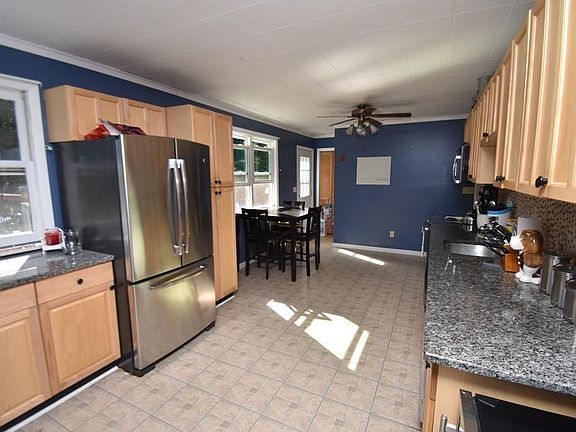 Large ranch set back from street situated on private 1.79 acre lot. Living room with pellet stove insert. Dining room with hardwood floors. Large, updated eat-in kitchen. Recently re-done full bathroom and three bedrooms. Roof on main part of house is brand new. Needs some updating and cosmetics but has lots of potential.