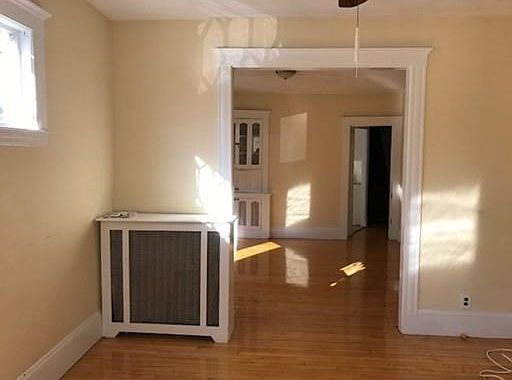 Available NOW. ELECTRICITY INCLUDED IN RENT. First floor Philadelphia style 3 bedroom apartment in East Arlington is lead compliant, has high ceilings and lovely hardwood floors. Spacious entry foyer leads to a bright living room with a wall A/C unit. Separate dining room has built in hutch. Eat in kitchen has white cabinetry and includes a brand new stove, a dishwasher, a refrigerator and a combination washer/dryer unit. A door from the kitchen leads to a large rear deck, for exclusive use of tenant. 2 bedrooms and 1 bath on main floor. 3rd bedroom is on the second floor with two closets. Shared rear yard. Parking for 2 cars in the driveway. NO PETS, nonsmokers only. No access to basement; storage is limited to the enclosed front porch. Tenants share snow removal with the other occupants of the house. Close proximity to both Mass Ave and Broadway for public transportation. Walk to East Arlington amenities.1st month/security/fee. Renter's insurance required. 3BD-XYZ