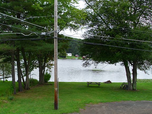 2 winterized houses on one large lot, currently rental properties, generating $1750/month located 3 hrs. east of NYC/north of Phili. Homes on the east side of the smaller of the two lakes in a water conservation area. Large house 2/3br,1bath,sunroom, wideopen 2nd floor, new central air,kitchen,windows,insulation,siding, drinking water filtration,lovely home. On lot water and septic. The smaller house(gold) has 10 yr. old kitchen, bathroom and furnace. Small living room with picture window and porch off living room, 1 small bedroom, bath, laundry room, kitchen. It generates $650/month in rent. Parking for 3 vehicles in front. Nice landscaping, beautiful magnolia tree in back yard. Everyone loves the lake!