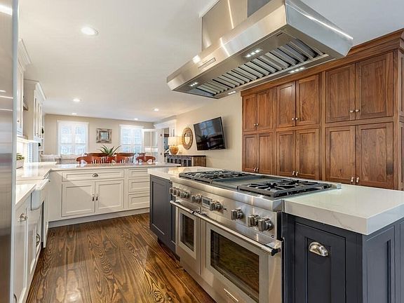• Features: Flooring - Hardwood, Dining Area, Countertops - Stone/Granite/Solid, Kitchen Island, Cabinets - Upgraded, Recessed Lighting, Remodeled, Stainless Steel Appliances, Wine Chiller, Gas Stove, Peninsula, Lighting - Pendant