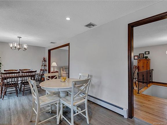 Privacy and tranquility on this wooded lot in North Guilford. Enter into the well-maintained Raised Ranch through the foyer, which sets the tone for a warm welcome and home organization. Move up to the main level, where youll find the spacious light-filled living room, hardwood floors, oversized windows. This flows into the dining area and kitchen, which features stainless steel appliances and ample cabinet and prep space. Three bedrooms, including the master ensuite, are located on the main level. Downstairs, a family room with fireplace and exposed beams is a cozy place to relax. A fourth bedroom is located on the lower level, and could be utilized as a home office or playroom. Outside, the scenic property can be enjoyed from the back deck. Located near hiking trails and restaurants of North Guilford. Schedule your showing today!