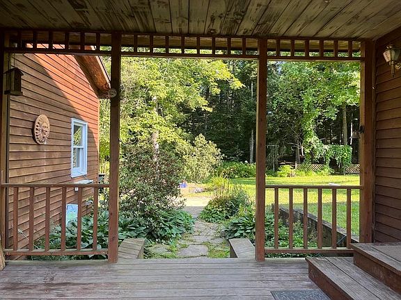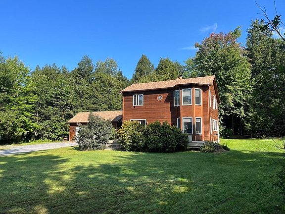 Plenty of room to roam in your own forest or sit and enjoy your private backyard. Welcoming open Porch that connects garage to house with a mudroom great for all the Vermont seasons. Kitchen even has a desk nook. Dining room has an atruim door out to a large deck to enjoy the southern exposure, while the backyard has some shade. Living room is spacious and has a pellet stove. It also has a windowed bay that is mirrored above in the Master Bedroom . Upstairs has three bedrooms, bathroom and an office space. Two car garage plus a small barn gives plenty of space for not only your cars but the hobbyist and yard equipment. Country living only minutes to town, 15 minutes to Smugglers Notch, 35 minutes to Burlington and 20 minutes to St. Albans or Essex. School is K-12. Definitely worth a look.